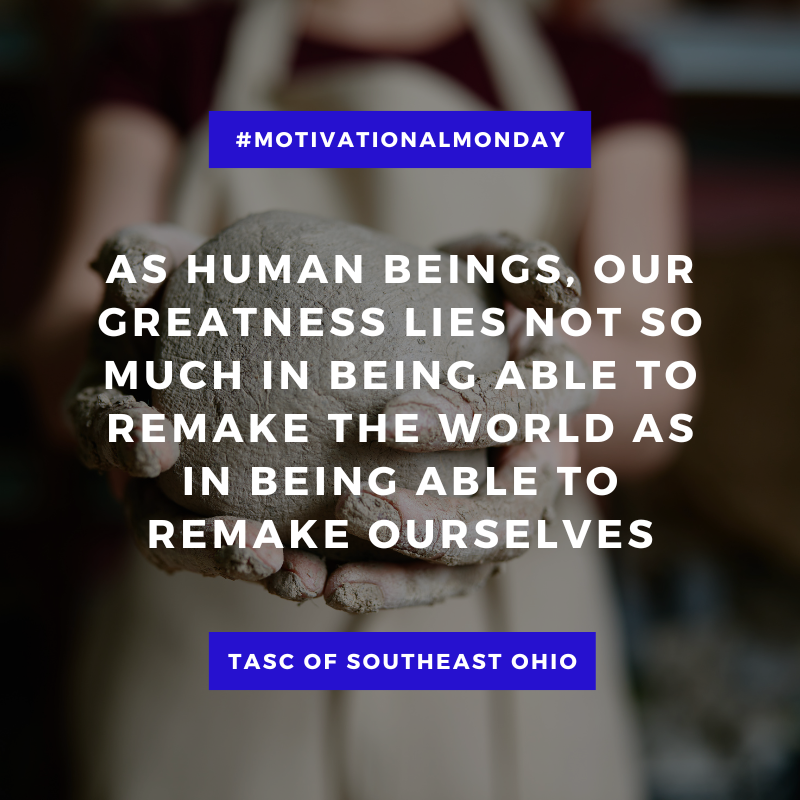 Motivational Monday - 6/9/2025TASC of Southeast OhioJun 8, 20251 min read#MotivationalMonday As human beings, our greatness lies not so much in being able to remake the world as in being able to remake ourselves.